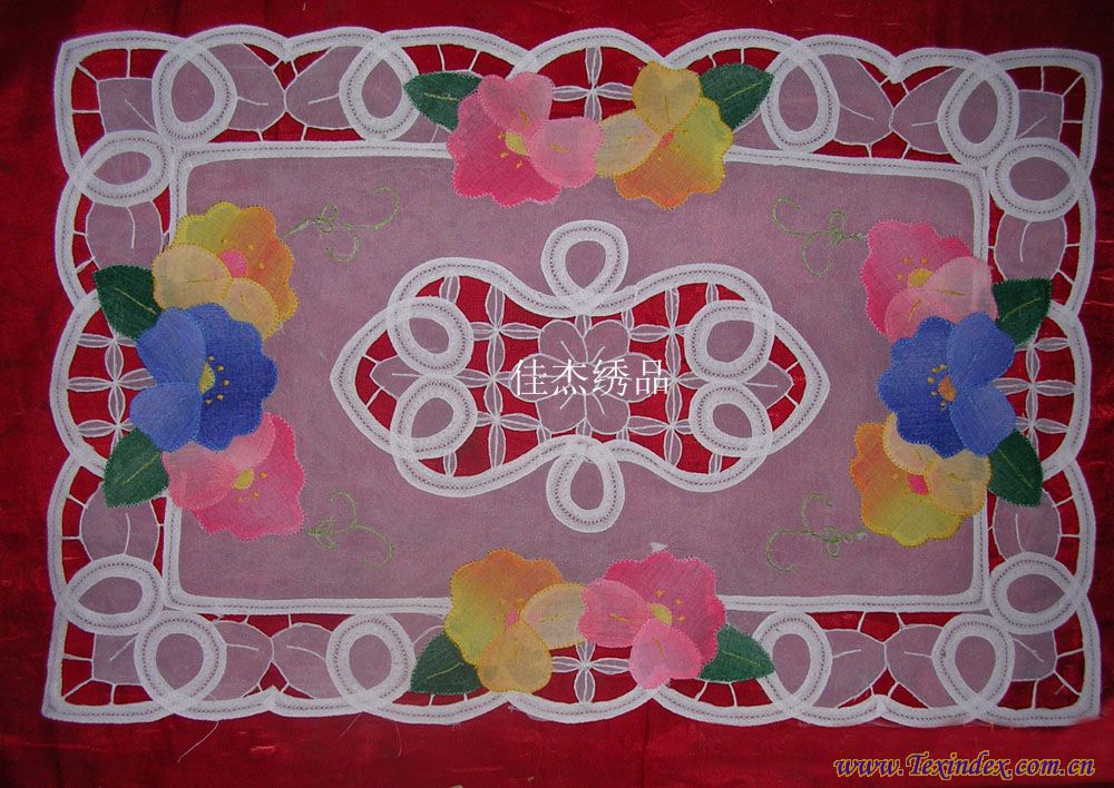 補(bǔ)花盤墊  規(guī)格33*48/30*45/15*30 纖維材料100%滌 品種補(bǔ)花盤墊 織制方法補(bǔ)繡 工藝特點(diǎn)手工 產(chǎn)地山東 淄博