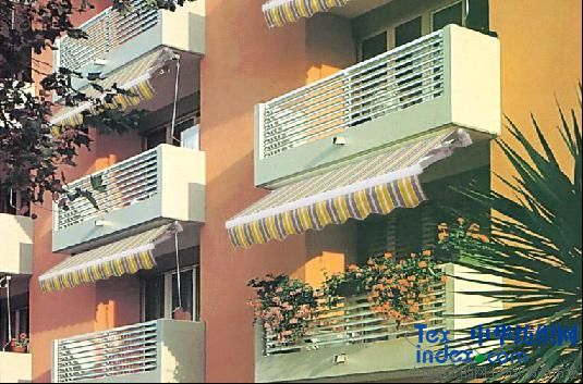 DS2000曲臂式遮陽蓬,工作是使用機械裝置和曲臂裝置系統,在彈簧的作用下,產生伸縮張力,整個曲臂組由臂止動件實現5~70度任意精確平行調整。可通過不同傳動系統:手動曲柄操縱、電機操縱.結構骨架采用高強鋁合金/優質剛材/鋅合金/ABS樹脂/聚丙烯PP/尼龍制成.而螺栓和螺絲均為不銹鋼制成.可適用于混凝土、磚墻、木質、輕鋼龍骨等硬型墻體安裝,還可以實現吊頂安裝.最大適用伸出長度為3.50米.