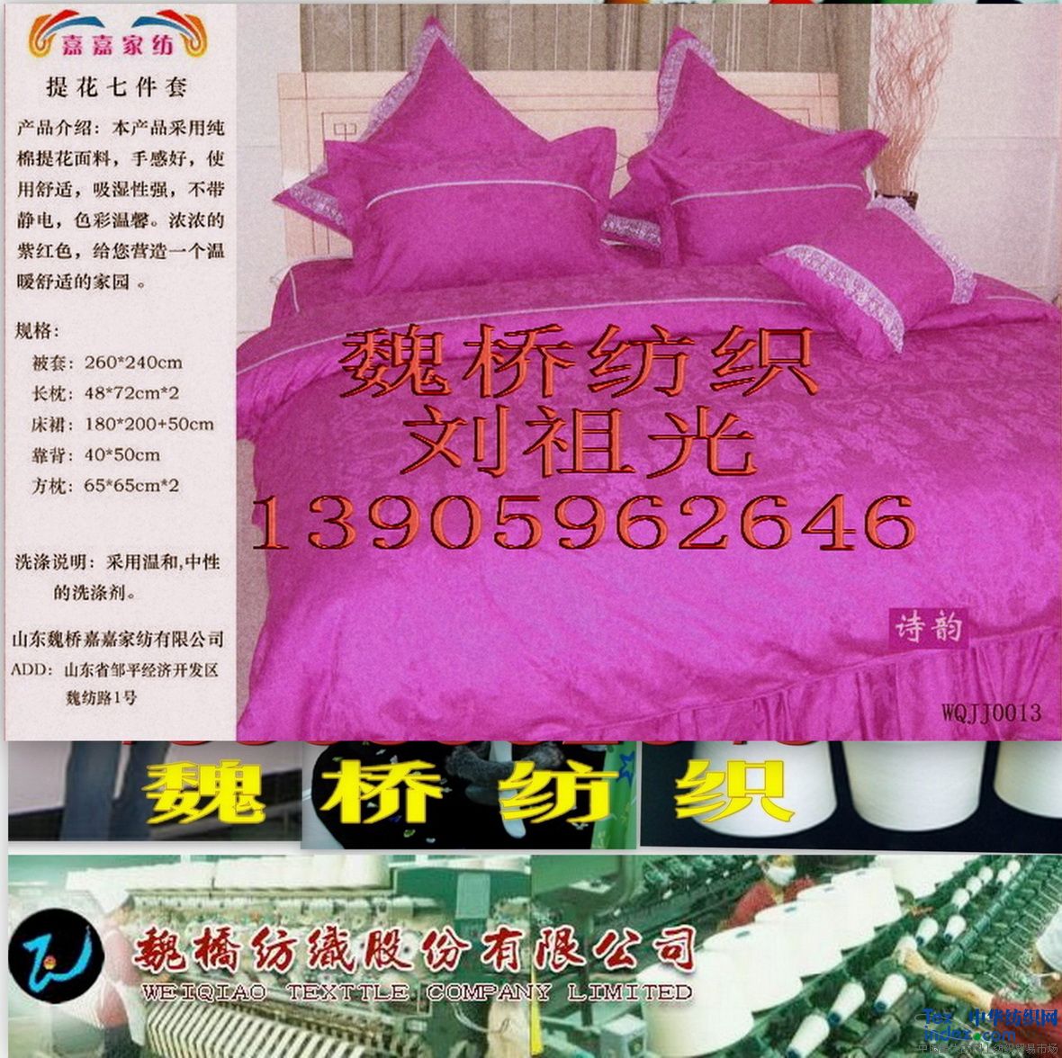 山東魏橋嘉嘉家紡有限公司是山東魏橋創(chuàng)業(yè)集團(tuán)有限公司的子公司,公司位于魏橋創(chuàng)業(yè)服裝家紡工業(yè)園內(nèi),東距青島港180公里,西距濟(jì)南機(jī)場(chǎng)40公里,緊靠濟(jì)青高速公路,交通十分便利。