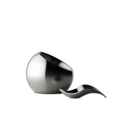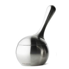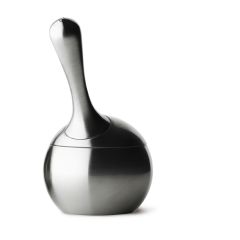 研磨的握柄借用沙鈴的把手設計,圓潤好握,又能輕易使力;圓形開口的鹽罐,搭配上弧片鹽杓,有如響板擴大聲響的內弧,輕舀一匙,攝取細糖也不過量。