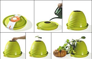 這個可降解的伸縮花瓶在拉伸開來并埋上種子澆水開始使用之后,可以保持正常狀態9個月時間,之后就可以拋棄到垃圾箱里,在大自然中完全降解。   在這9個月的時間,花瓶還可以根據植物的生長狀態而改變形狀。在秋末冬初,天氣變冷植物枯死的時候,花盆也到了使用期限,可以跟植物一起腐化分解在自然中。