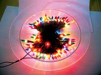 由兩個透明的玻璃盤和彩燈組成,兩個盤子不會閉合起來,既方便擺各種造型,又利于散熱。
